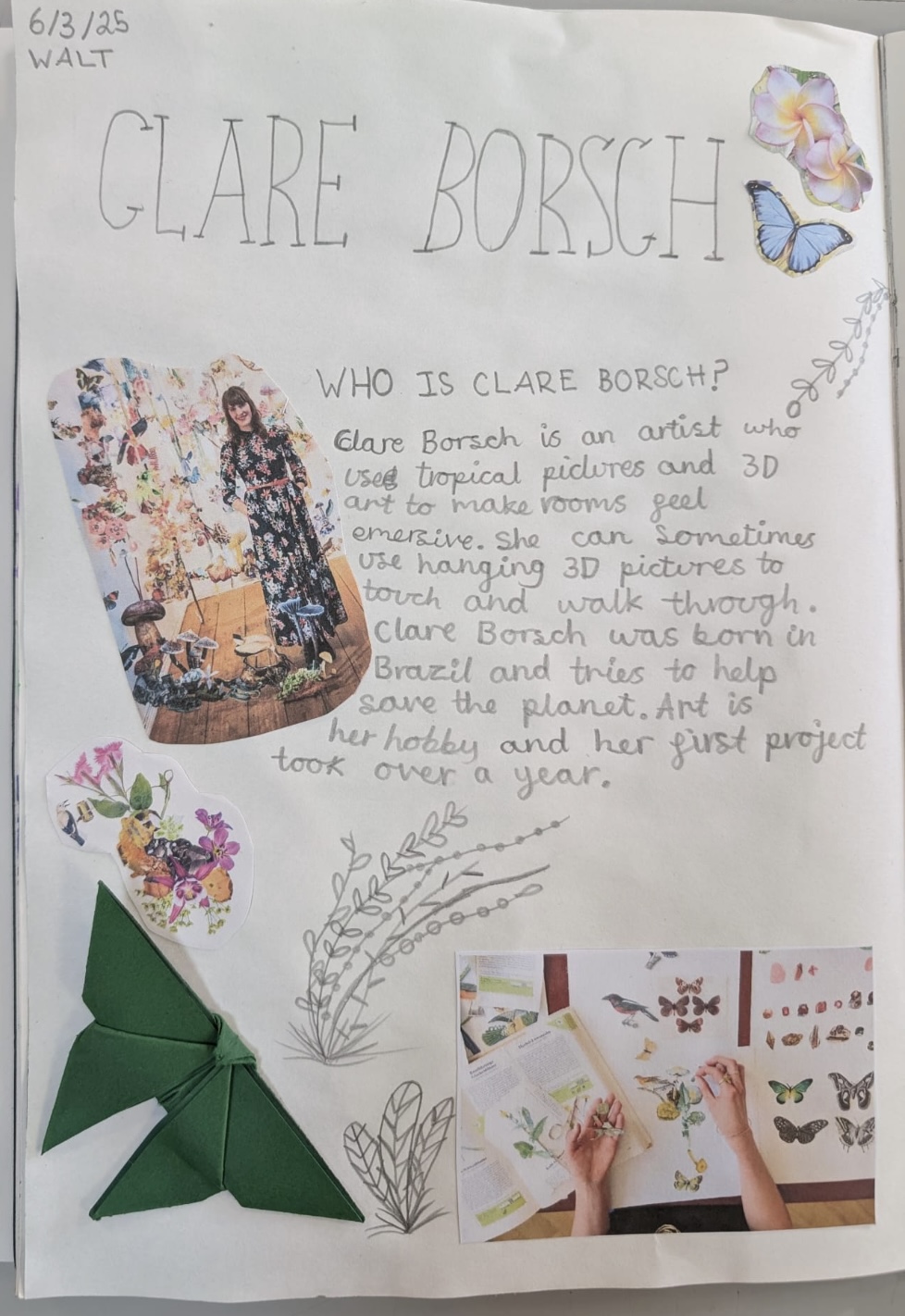 ‘I like art club and being an Art lead. I get to help make ideas for Art and join in with Art clubs and competitions. The best one was origami making.’ Josie