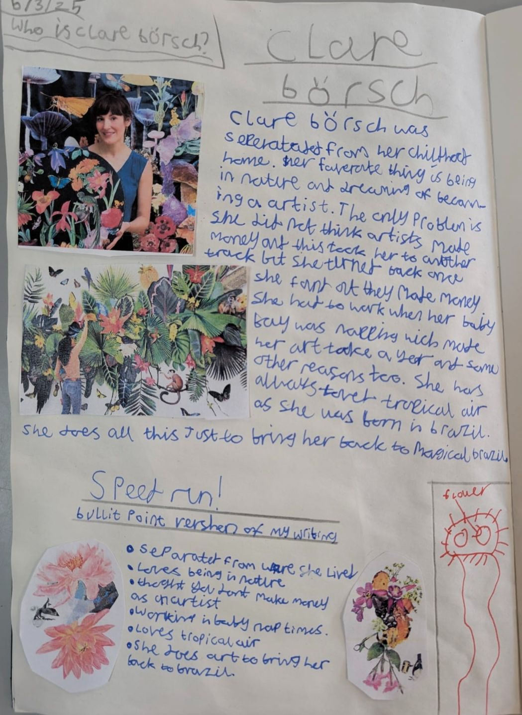 ‘We walk around the room and look at each other’s artwork and reflect on it. If we like ideas we can magpie them and share what we like and what we want to practice.’ Gabriela